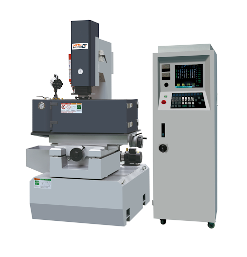 Электроэрозионный копировально-прошивной станок серии Metal Master MNC-350 является однокоординатным прошивным станком. Система ЧПУ на станках этой серии управляется одной вертикальной осью Z, которая определяет глубину электроэрозионного прожига. На осях X и Y установлены оптические линейки с дискретностью 0,005 мм. Перемещение по осям X и Y осуществляется вручную, путем вращения рукояток. Во время обработки заготовки оси X и Y должны оставаться неподвижными, для этого в области рукояток расположены фиксирующие зажимы, не дающие ШВП провернуться.