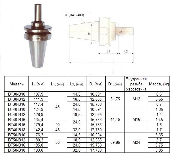 Оправка 7:24 -ВТ40х90 (MAS403) / В16 на внутренний конус сверлильного патрона (для станков с ЧПУ)