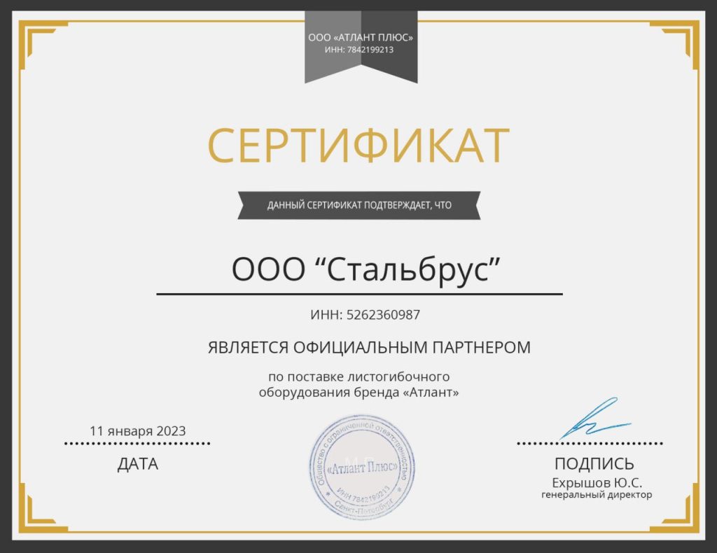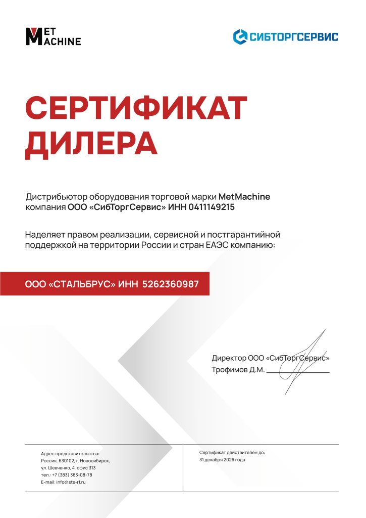 Сертификат дилера MetMachine