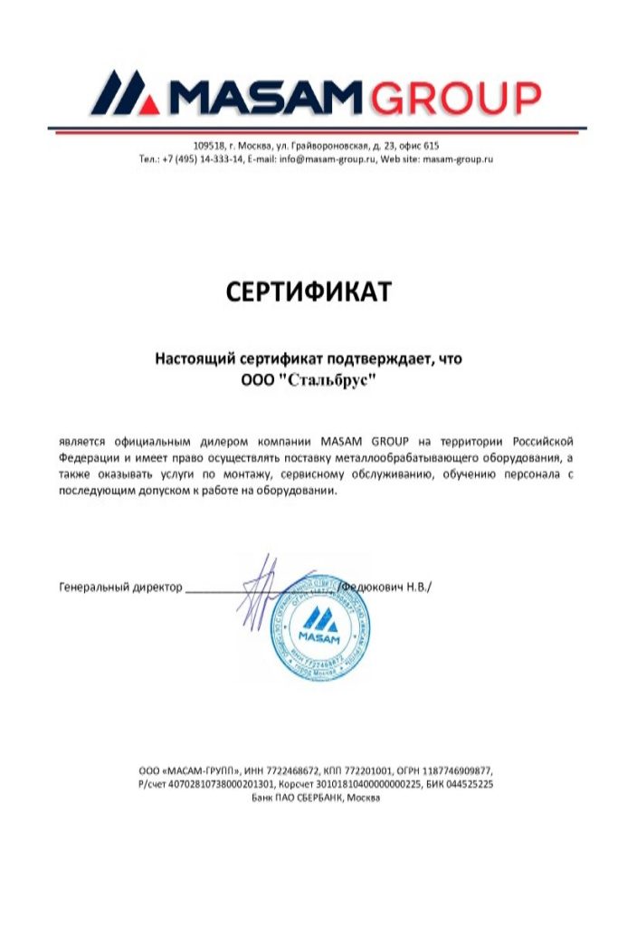 Сертификат дилера Masam