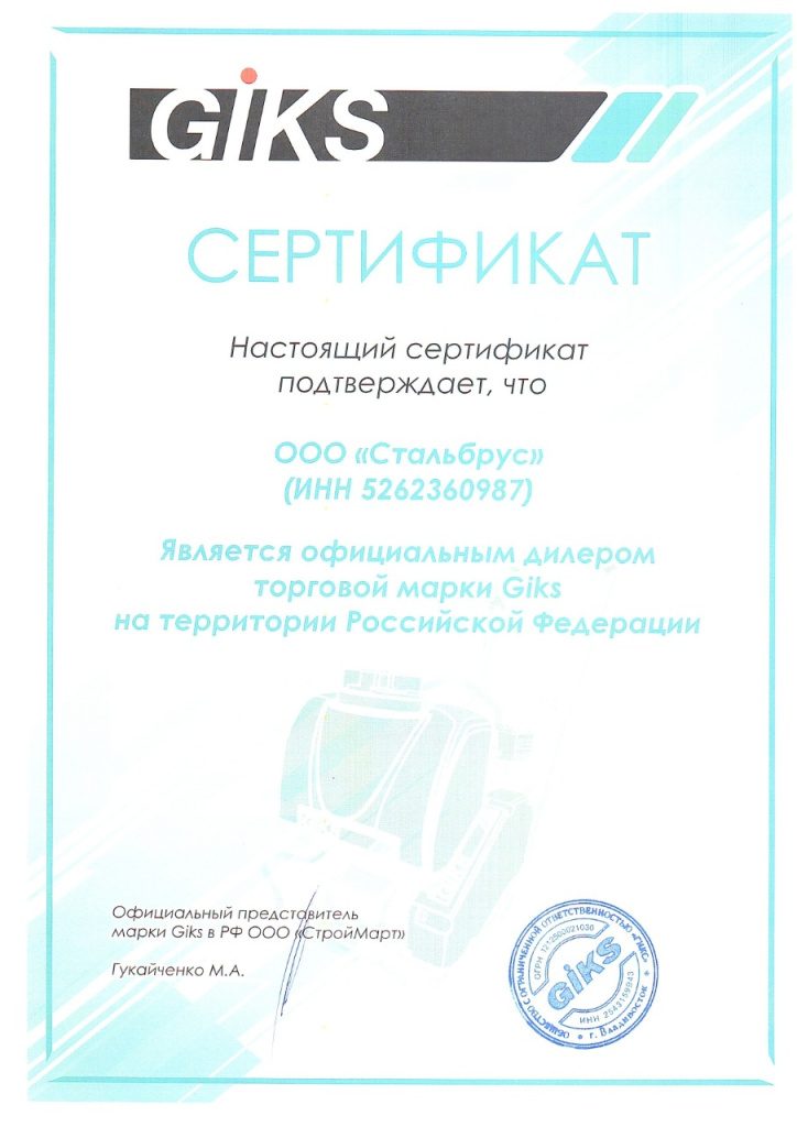 Сертификат дилера GIKS